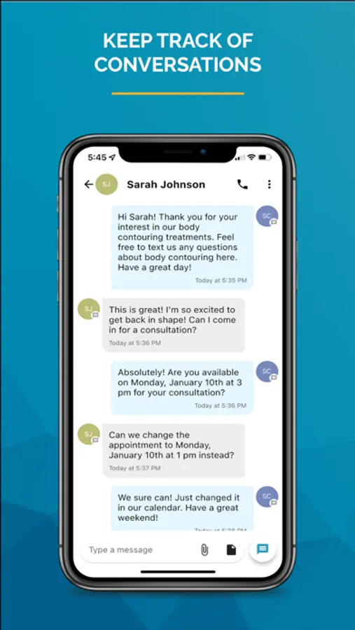 TWO-WAY MESSAGING: Increase response rates utilizing text messaging to quickly and easily communicate with potential patients in real time for conversations, appointment reminders, and confirmations.