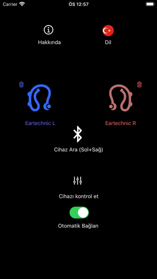Cleverear allows you to adjust audio, aux, mic, stream channel settings via a bluetooth connection for hearing aids.