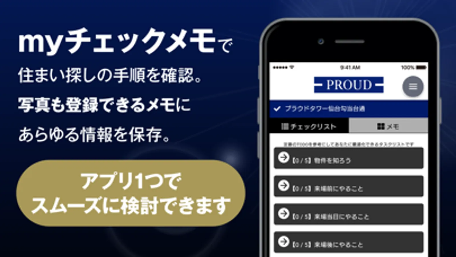 公式サイトでは手に入らない情報やもっと知りたい情報をスマートフォンの中に集約し、見学前後の購入検討に必要な便利機能も活用することで、一生に一度の大きな買い物を、楽しみながら、じっくりと、満足な検討ができるマンションメモ帳を作れます。
