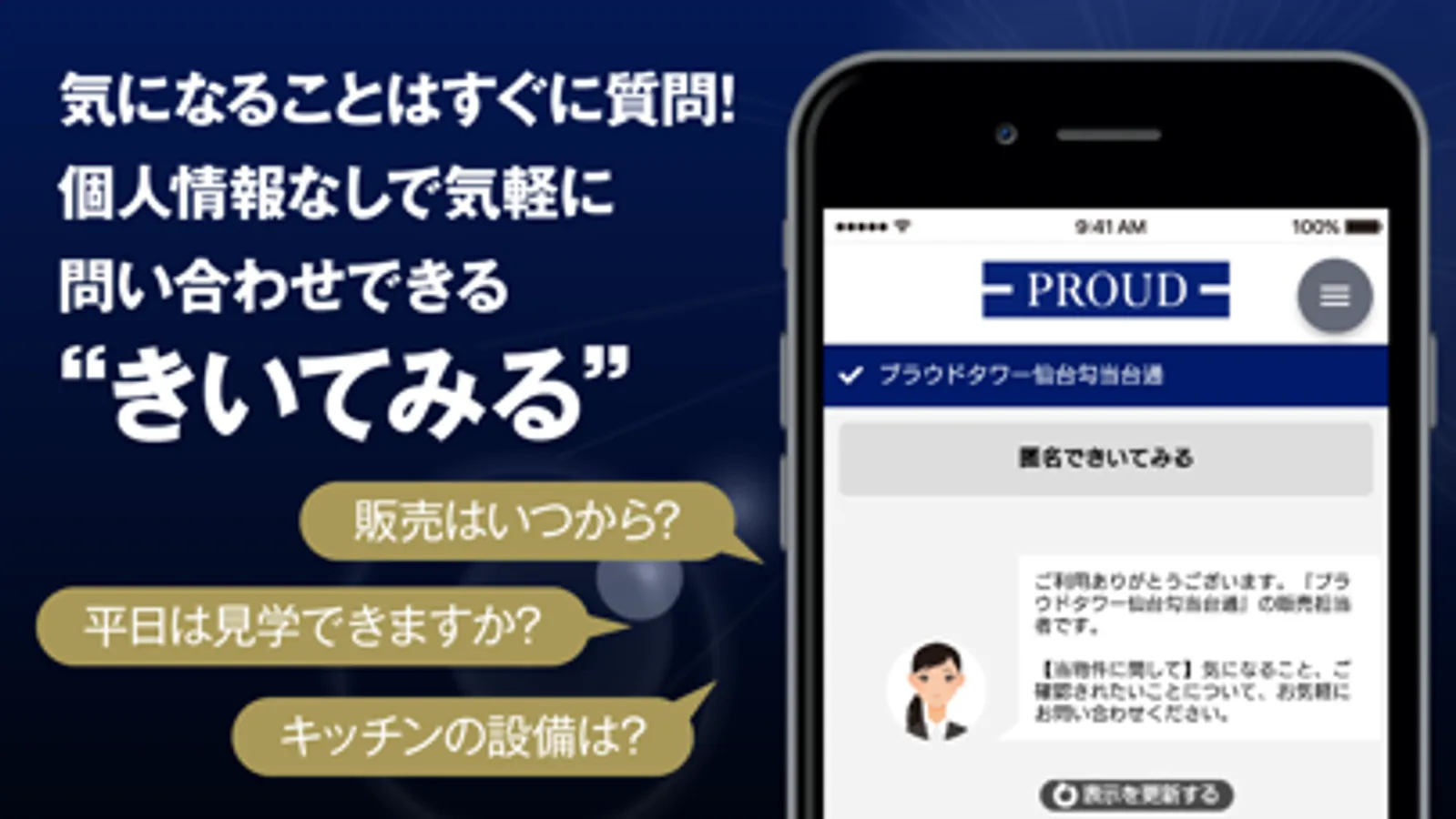 気になること・不安なこと・もう少し詳細を聞いてみたいこと、わざわざ電話することなくアプリだけでメッセージを送って物件の担当者に質問ができます。