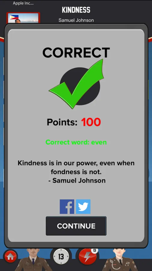 Played a quote that inspired you? You can save quotes after playing a game so you can play them again to remember those quotes. You can also share that quote immediately during a game to Facebook or Twitter!