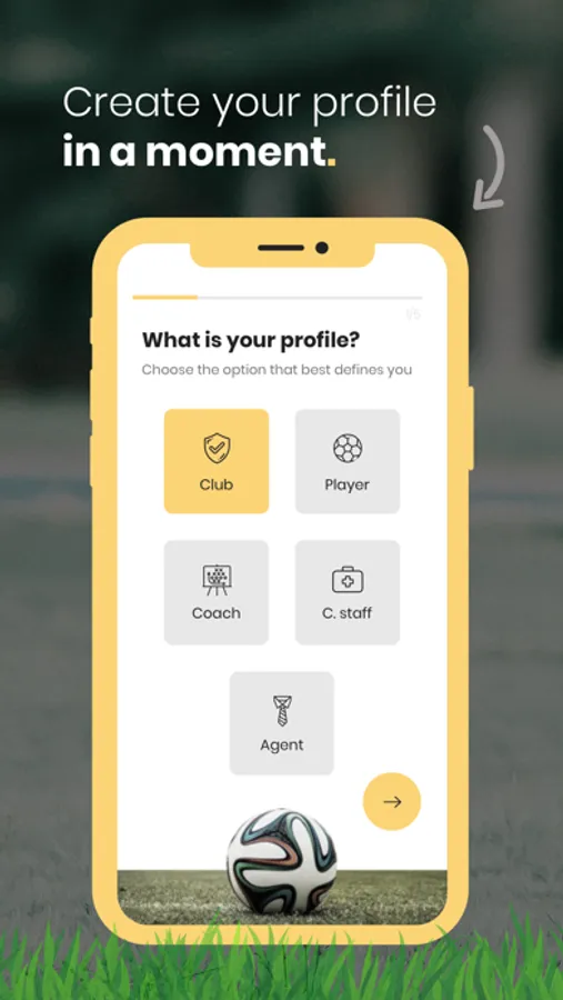 Indicate your position in football, date of birth, category and division. That easy. And... WARM UP, you're getting in!