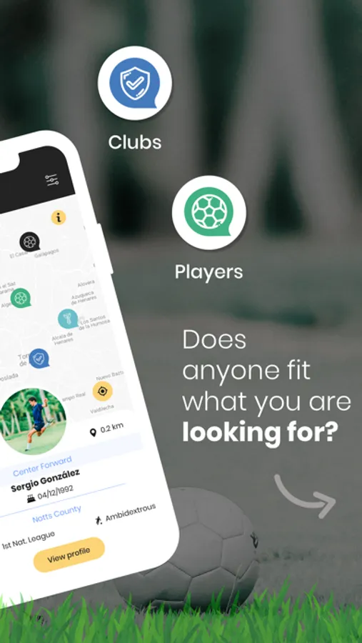 Search by profiles (players, clubs, coaching staff, representatives, coaches) and by distance on the map. You can see directly, on the map, all the profiles wherever you want. You know what they say: He who seeks ...