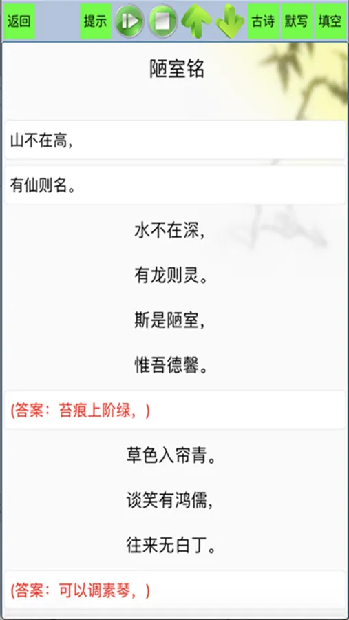 5.每首诗在古诗,测试和游戏模式下均配有朗读。