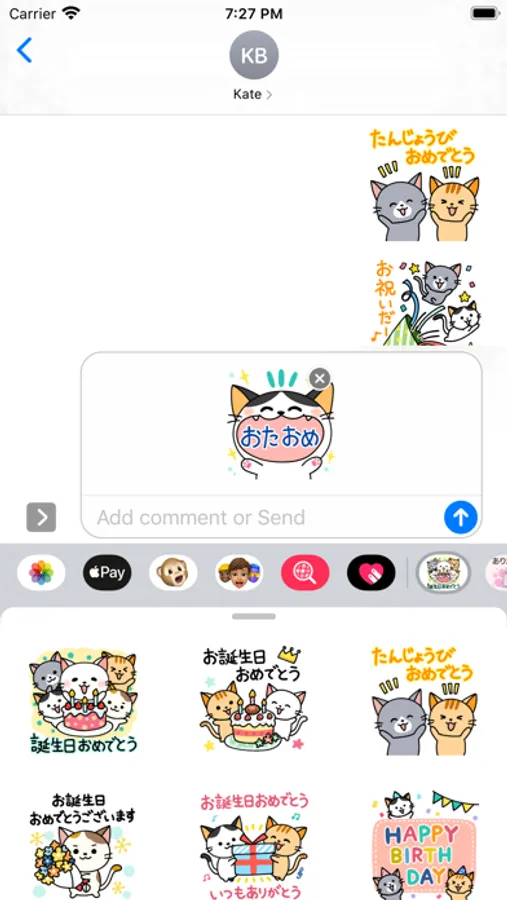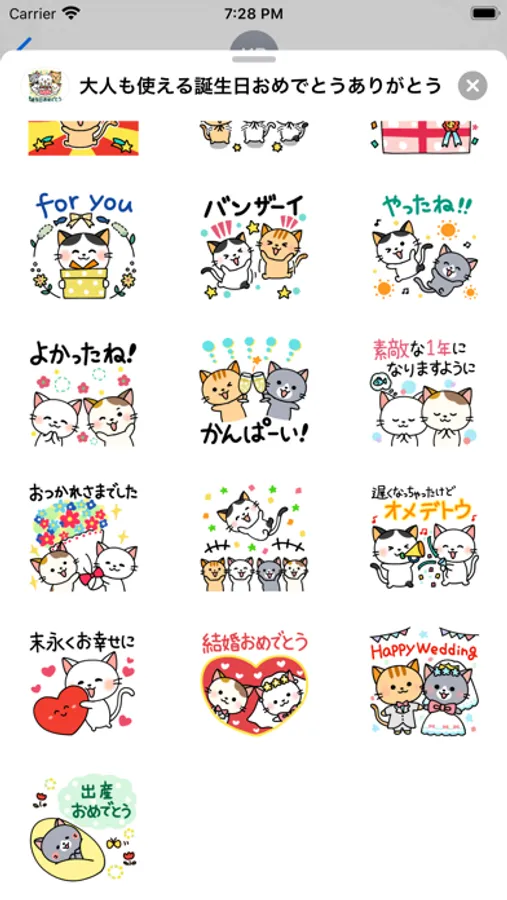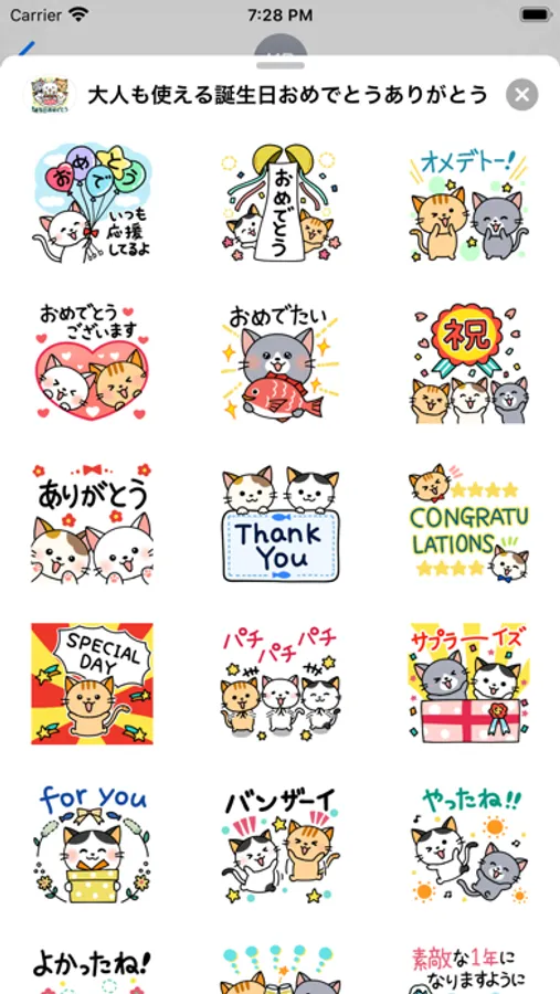 Stickers that's cats carrying happiness. These stickers entrust you in any situation of the celebration. Send to friends, family, lovers and other important people.