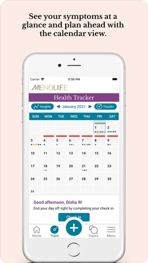 - Your personalized health tracker is completely customized for premenopause, perimenopause, menopause, and postmenopause needs.