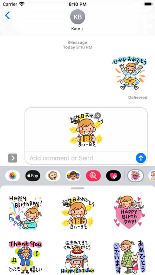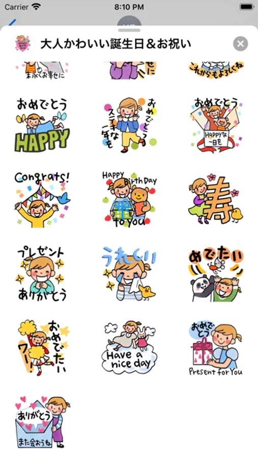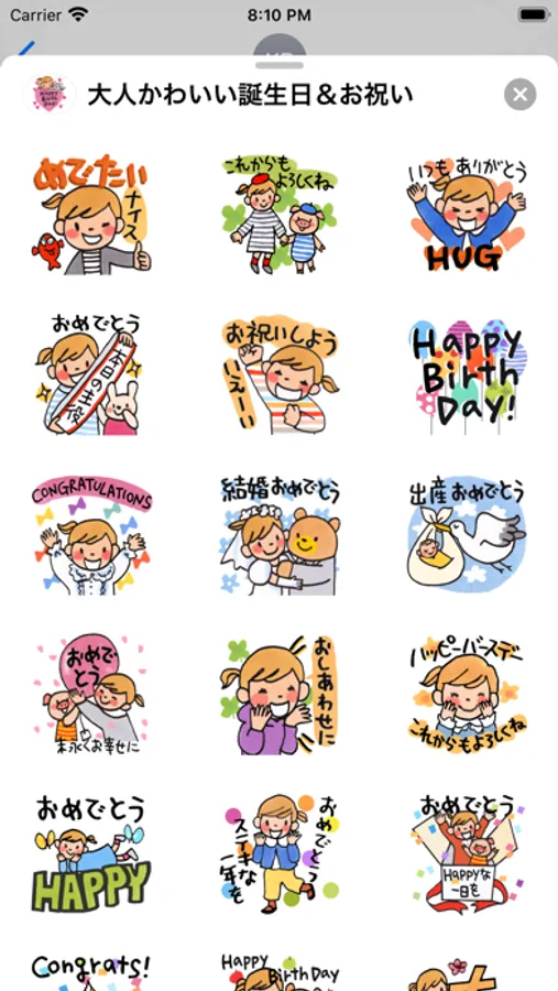 Congratulations messages & thank you stickers from cute girls and animals. Send to friends, family, lovers and other important people.