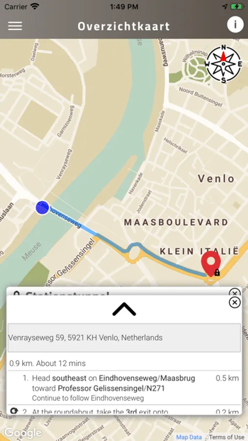Let op: Bij de 75 jaar bevrijdingsapp Venlo kan er gebruikt worden gemaakt van een offline kaart of een online kaart. Bij het gebruik van de offline kaart worden functies gelimiteerd.