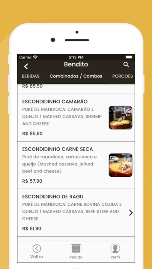 - cardápio ilustrativo, com preços dos produtos;