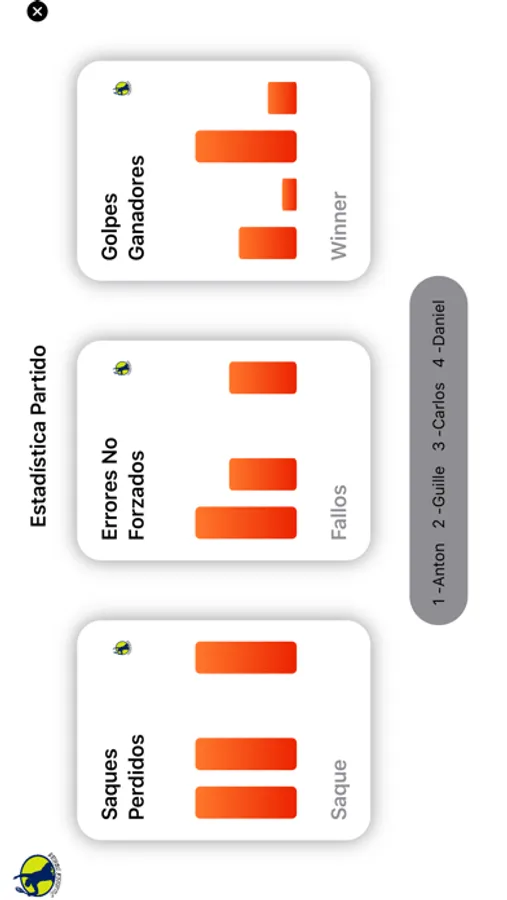 Podrás obtener estadísticas de cada uno de los jugadores que te permitirán mejorar el juego de los jugadores. Tendrás estadísticas de los saques que ha perdido cada jugador, los puntos que has ganado y los que has perdido.