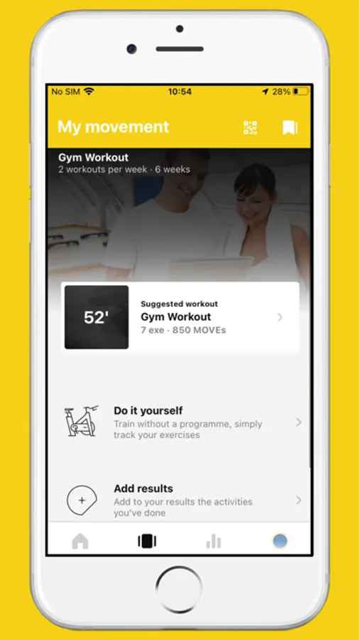 MI MOVIMIENTO: Lo que has elegido hacer: aquí encontrarás tu programa, las clases que has reservado, los retos a los que te has unido y todas las otras actividades que has elegido hacer en tu establecimiento