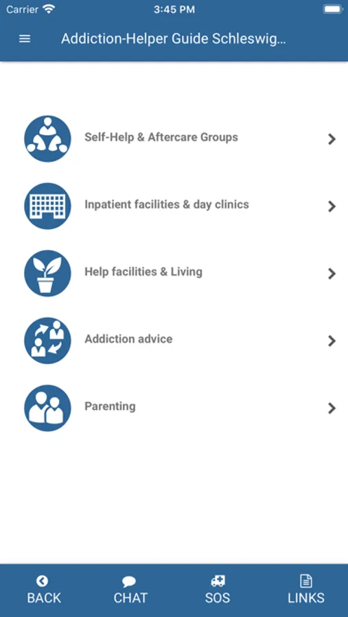 Das Verzeichnis der Einrichtungen für Suchtkrankenhilfe in Schleswig-Holstein.