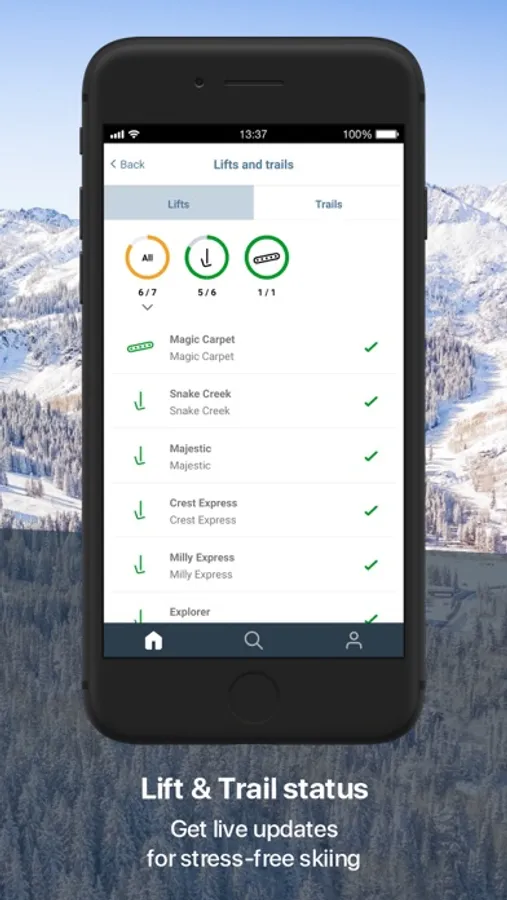 Within the app, you can check lift and run status, find current weather and snow conditions, and view a trail map to find where you are within the resort. You can also purchase lift tickets or browse resort services and restaurants.