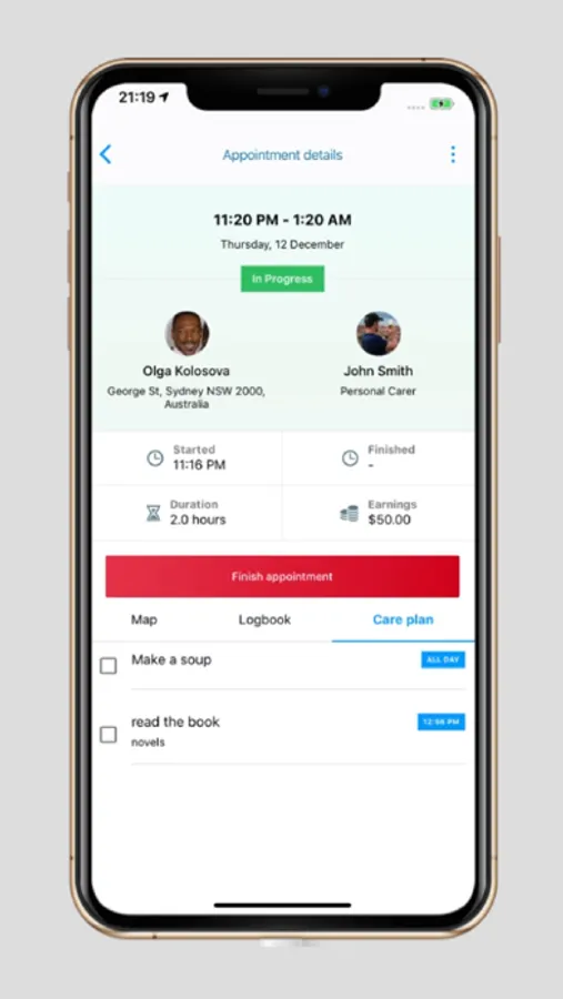 Our Mobile Application helps the Carer manage all aspects of the care work within the InPlace Care platform.