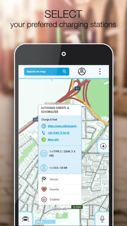 EV Navigation does not only provide users with a reliable navigation system, including charging stations, but it is also capable of calculating the range the users can cover with their individually selected electric car.