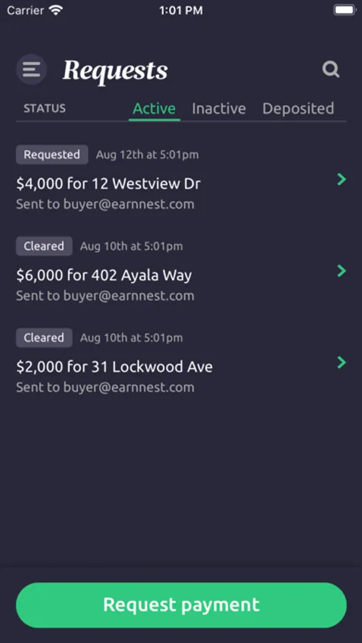 Earnnest is the largest digital earnest money service in the U.S. With the Earnnest app, send digital earnest money requests for your real estate business any time, anywhere.
