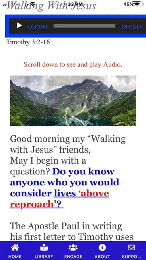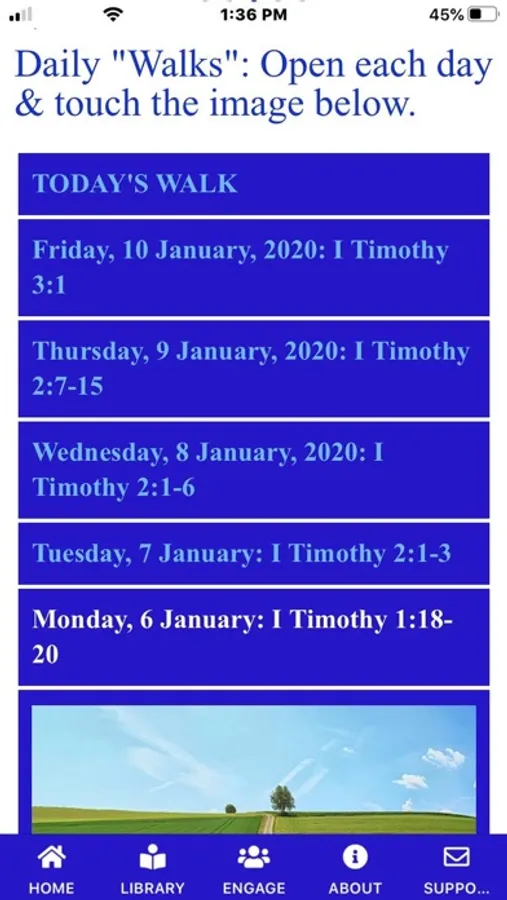 * The previous six days of Daily “Walking with Jesus” are on the app home page for quick access.