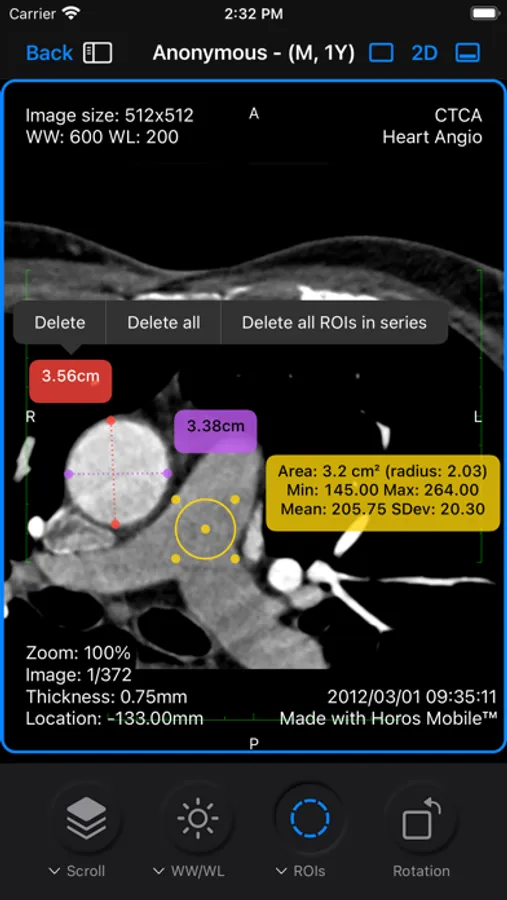 Intended Use: Horos Mobile™ (iOS, iPadOS and macOS) is not CE or FDA-certified and SHOULD NOT be used for primary diagnosis. It is for informational purposes only and not intended for diagnostic use.