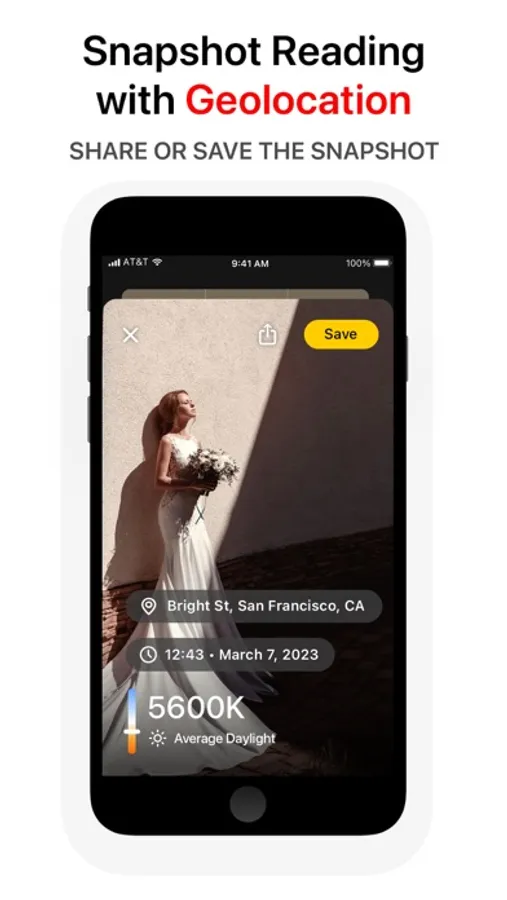 • Capture a snapshot with color temperature reading and location.