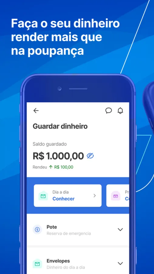 - Opção para guardar dinheiro de acordo com objetivos e rendendo mais que na poupança;