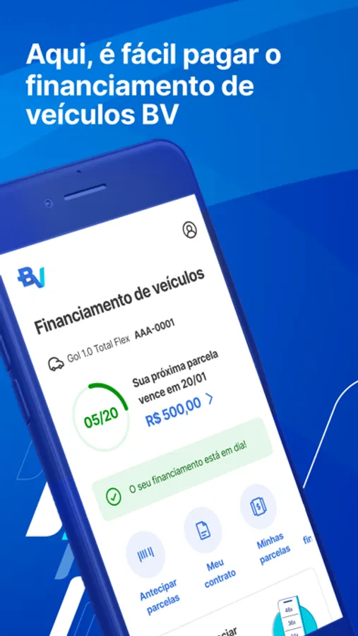Já tem conta BV, empréstimo pessoal, financiamento de veículo ou cartão de crédito? Acompanhe pelo app parcelas, adiante pagamento de empréstimo e financie com seus dados protegidos.