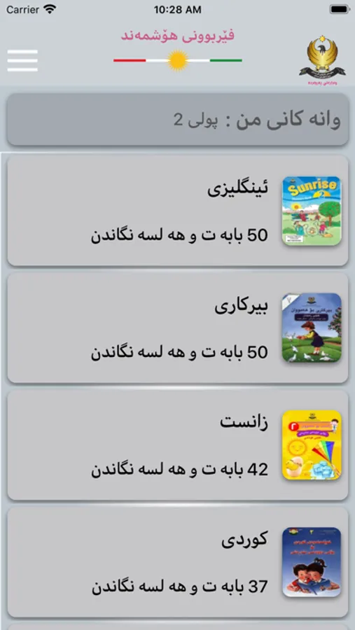 In HewreFeerge, you can access all school books of Kurdistan. All lessons are ordered according to their order in the books and there are exams at the end of each section.