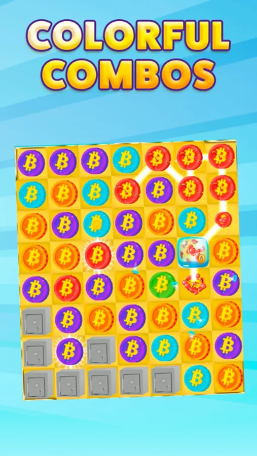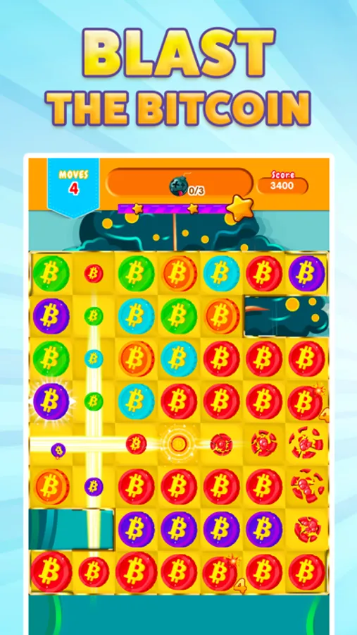 Blast your way through hundreds of strategic levels with progressive difficulty. Focus on creating colorful combos--the longer the Bitcoin chain the bigger the explosions! Collect diamonds/rubies, shatter stones, and crack the safes by matching the “Bitcoin” with like-colored coins.