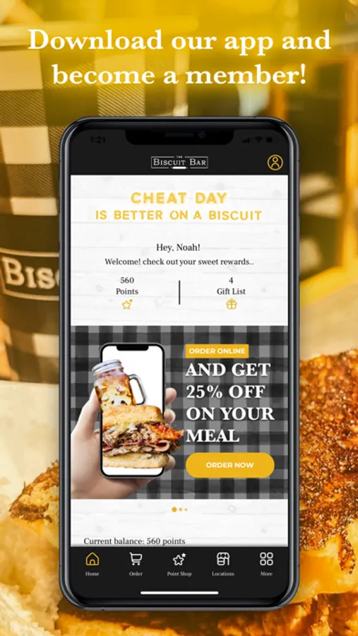 Order Southern goodness at your fingertips with The Biscuit Bar mobile app, plus join our brand-new loyalty program to earn and redeem points on all your favorites!