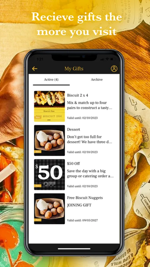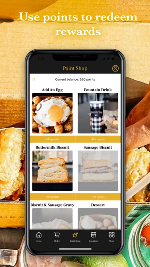 • Redeem points for your favorite biscuits, tots, taps, and more.