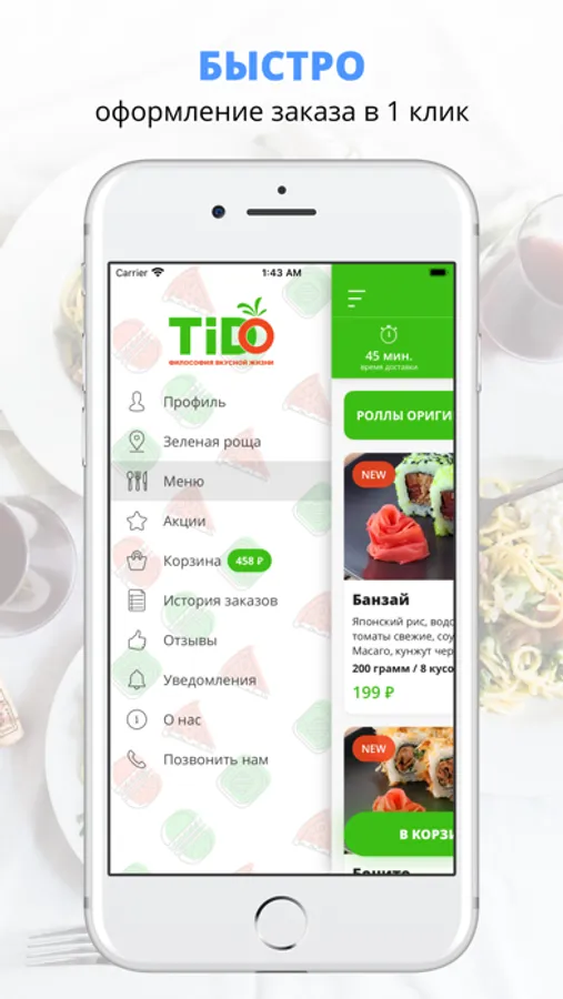 Компания TIDO - служба оперативной доставки высококачественной и вкусной готовой еды в г. Уфе. Мы используем только качественные и свежие продукты, работаем исключительно с лучшими поставщиками России в сегменте Хорека, в нашем меню представлены блюда из: японской кухни, паназиатской кухни, римская и классическая пицца, оригинальные бургеры собственной разработки.