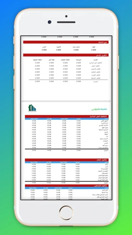 تطبيق يفيد في تسجيل تكاليف البناء الفعلية بناء على معلومات يدخلها المستخدم وفق نماذج تقسيمات ( قسم – باكج – بند ) يسجل فيها معلومات التكاليف و نوع التعاقد و طريقة الدفعة و اسم المورد و يستخرج النتائج ملخصة بالميزانية المقدرة و الكلفة الفعلية سواء الكلية او بالمتر مربع