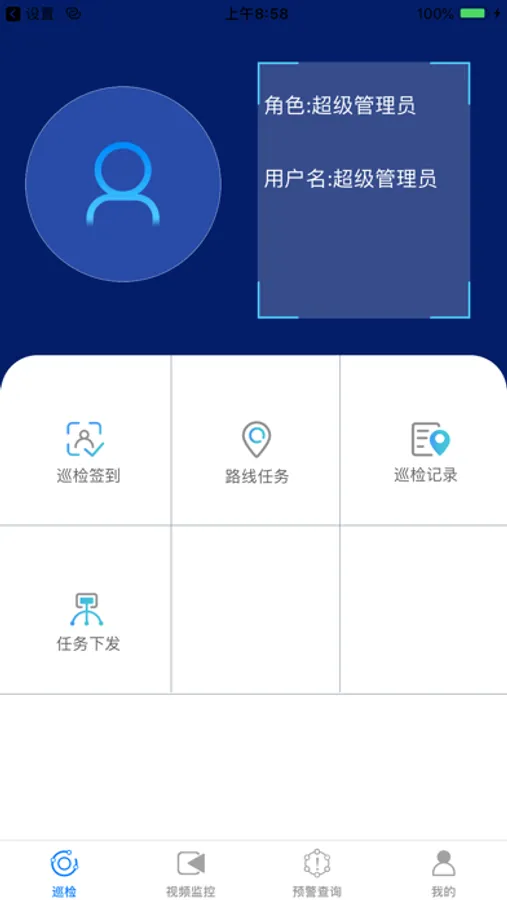 该APP是智能视频分析平台的移动端应用,具有智能巡检、实时视频监控和预警数据查询3大模块。一线人员用于执行巡检任务,可实时查看监控视频和查询预警记录的功能,领导还可随时下发巡检任务,查看一线人员的巡检执行状态和巡检现场照。