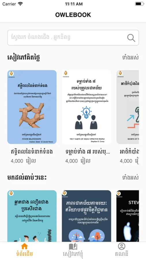 All books in Owlebook are translated and summarize from original book to Khmer language. Owlebook also contain many books from various Cambodian authors and more.