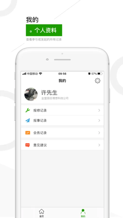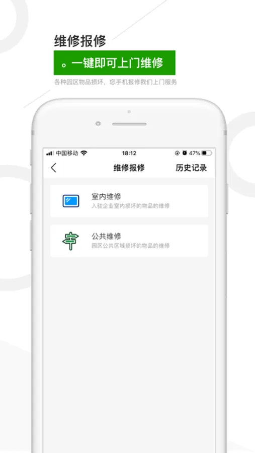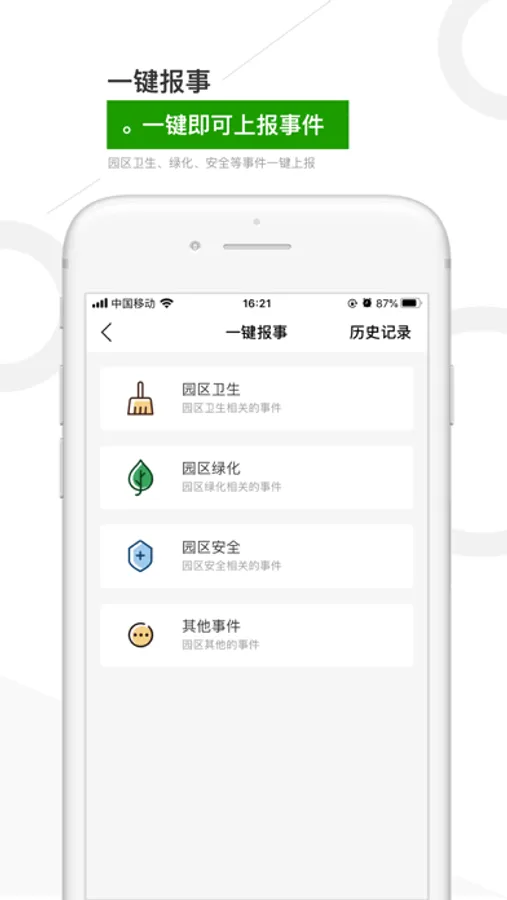 3.一键报事:App上报事,足不出户,服务人员马上上门处理!