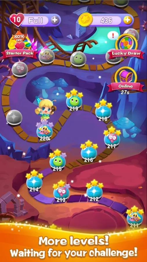 Bubble shooting fun comes with a relaxing atmosphere and mysterious magic world in Bubble Pop 2. match 3 or more bubble to clear all the bubbles on the screen.try your best to get 3 stars on every level .Shoot bubbles to pop and drop your way to pass levels!