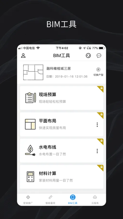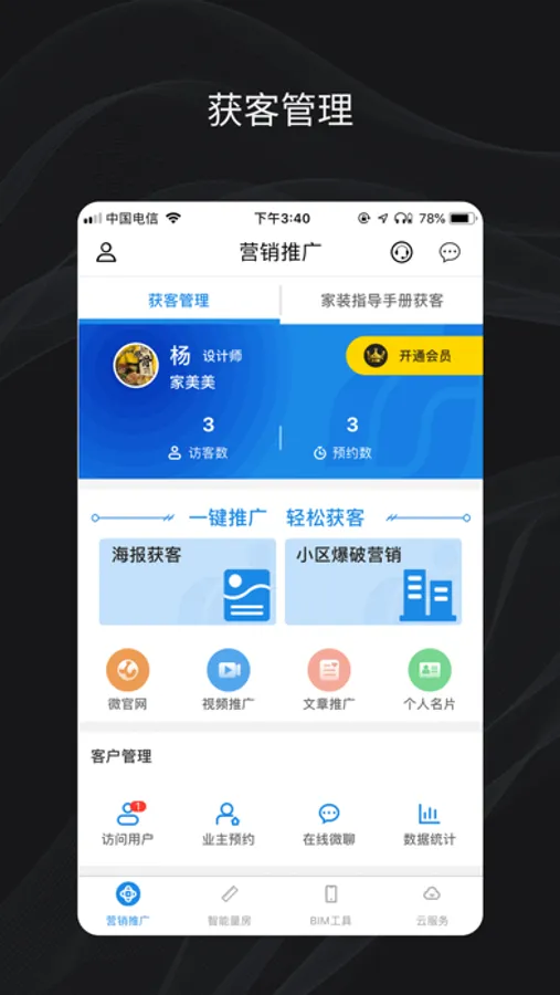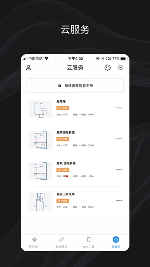 “美家在线”通过移动互联网技术帮助装修商实现“在线精准服务消费者”,APP是服务商配套产品,为装修商提供包括获客、量房、布局、水电、算量、报价、云服务的全流程移动端效率工具。更多功能等你下载体验!