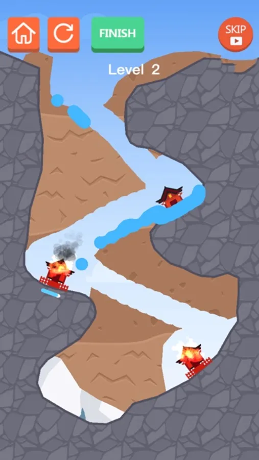 Houses on fire! Slide your finger quickly, guide the water to the burning house, and solve the burning fire!