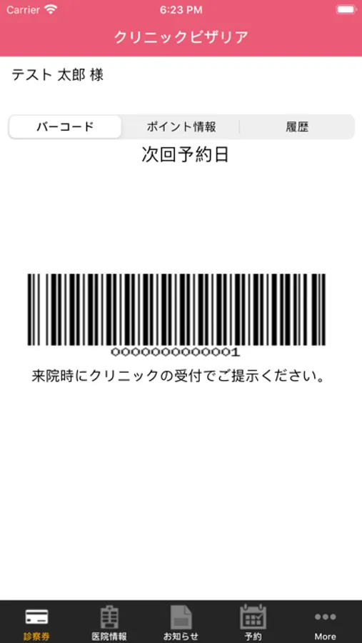 本アプリはクリニックビザリア専用の診察券アプリです。
