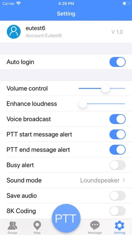Auto login - When phone is switched on ToooAirPTT will launch and login automatically