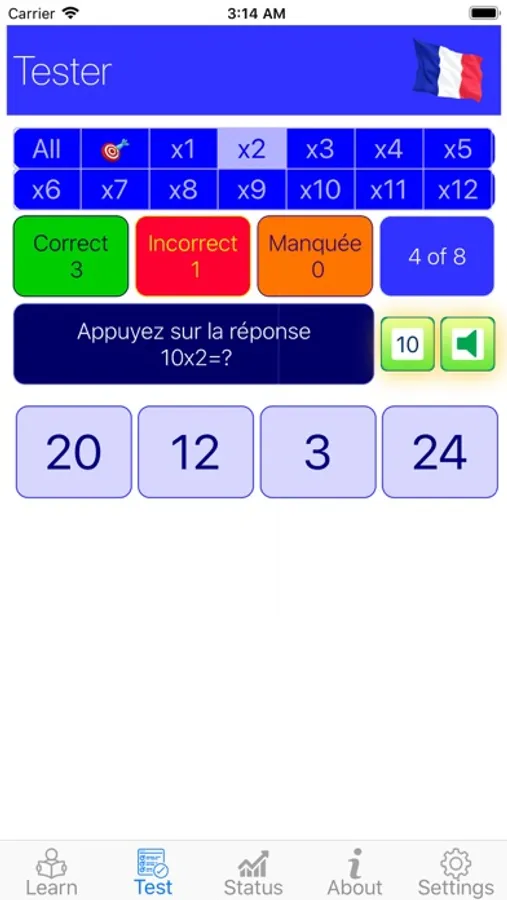 Teaches you the basics of Multiplication Table in English, French, German, Spanish and Italian 1-12, and helps you memorize them permanently by repeating and understand them in the everyday spoken language. This app can as well be used as an audio aid when learning Multiplication Table for the first time.