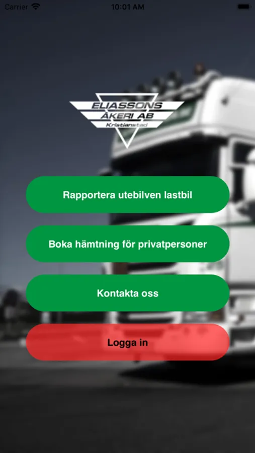 Eliassons Åkeri APPEN! Vårt primära syfte är att våra kunder kan följa sina paket. Man kan även rapportera lastbilar och boka paket.