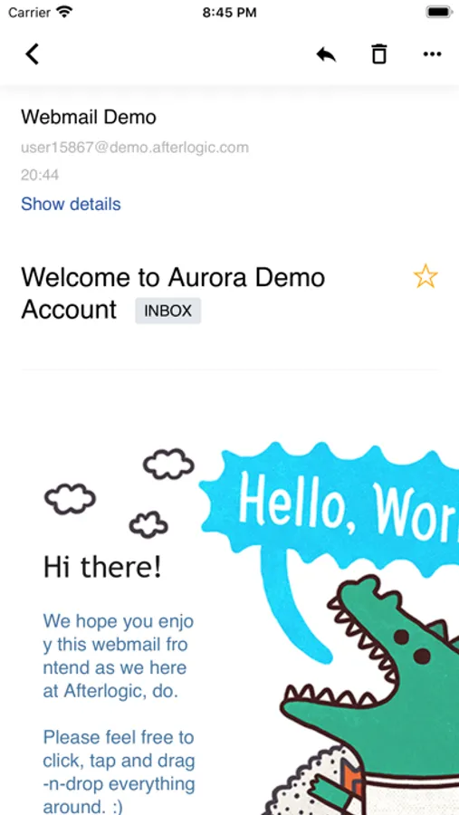 Aurora Mail allows mobile access to mailboxes served by the Afterlogic WebMail product family. This app enables you to perform all essential mail operations like viewing, composing, and sending emails including PGP encrypted emails.