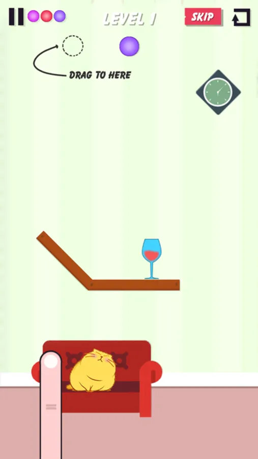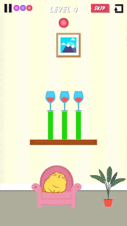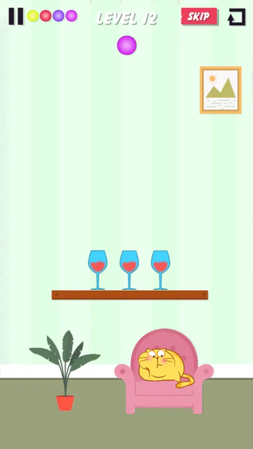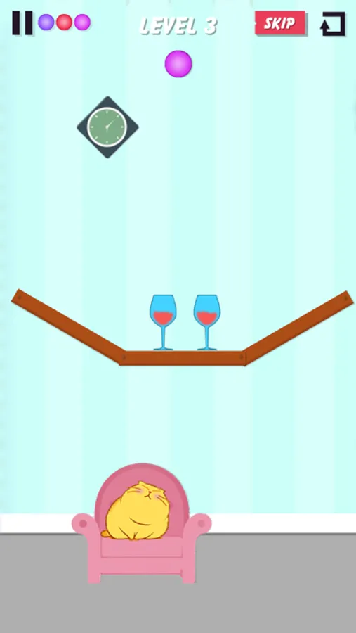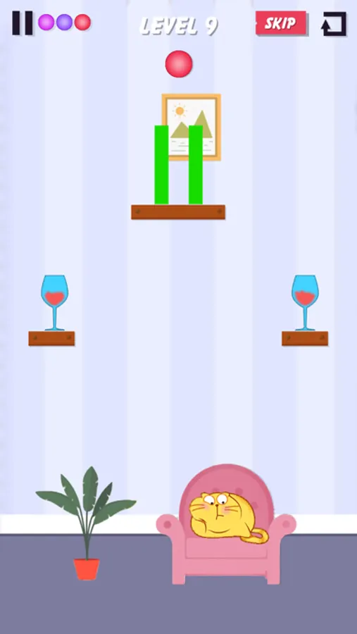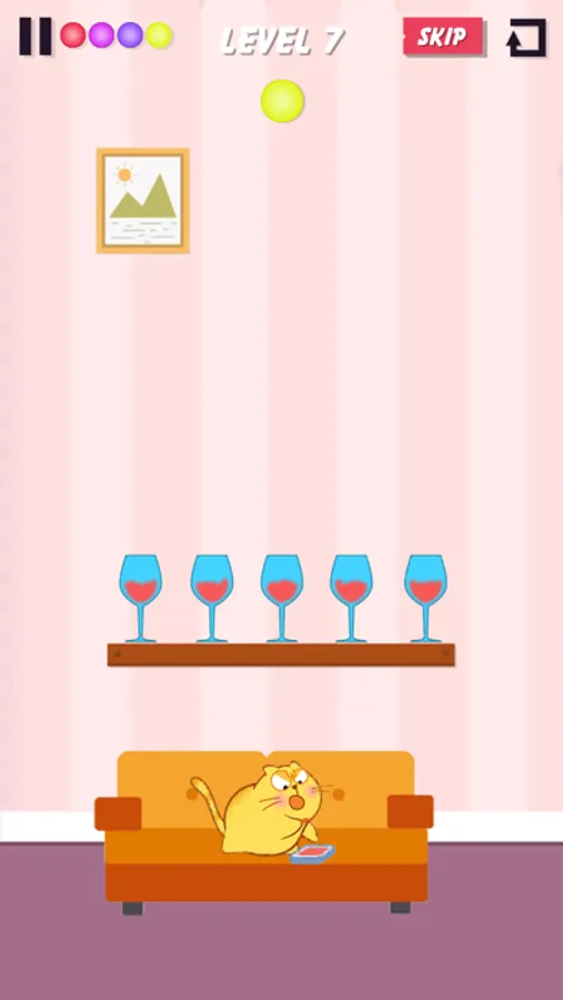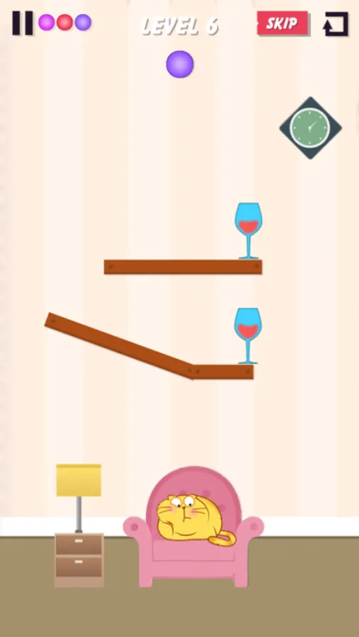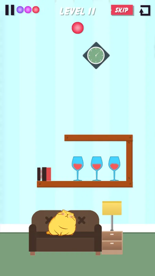 Game rules are easy. You are in a room with a cat. Your task is to spill all the glasses of water on the wooden shelf. Spill it and pay attention to the cat.