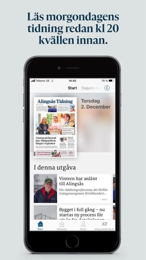 E-tidningen är den digitala versionen av Alingsås Tidnings papperstidning. Var du än befinner dig så kan du ladda hem tidningen och läsa den offline. Appen är gratis att ladda ner men du behöver ha/teckna en prenumeration för att kunna läsa den.