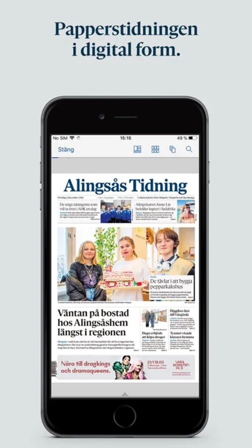 E-tidningen ger dig tillgång till all vår lokaljournalistik - läs alla reportage, granskningar och analyser i din mobil eller surfplatta, när och var du vill. Utöver tidningens delar får du även tillgång till alla ordinarie bilagor digitalt.