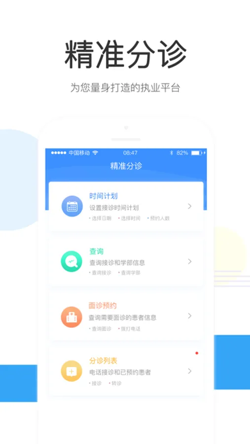 由经验丰富的医疗咨询师筛选您擅长的患者并直接预约到您预约计划中。彻底为您解决了不具备医疗知识的病人乱投医的困扰,节省了您大量的时间。