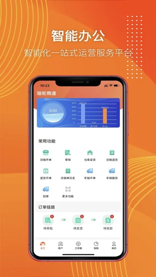 骆驼商道是针对销售企业专门部署的私有云数据中心:让公司运营标准化、系统化、可视化。帮助企业解决:人员调动、仓库进销存、客户维护、日常办公、订单跟踪、费用核销、营销活动、智能结算、外勤管理,潜在客户分析、一键交接等。帮助企业降低运行成本,提高工作效率,为客户提供线下销售的完美解决方案。
