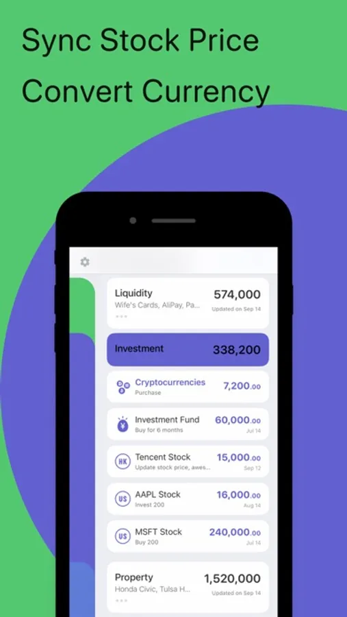 ◎ Track global stocks and cryptocurrencies with automatically price sync