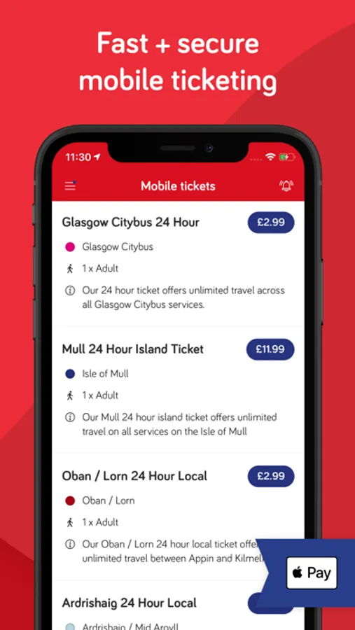 Mobile Tickets: Purchase mobile tickets securely with Apple Pay or a debit/credit card and show the driver when boarding - no more searching for cash!