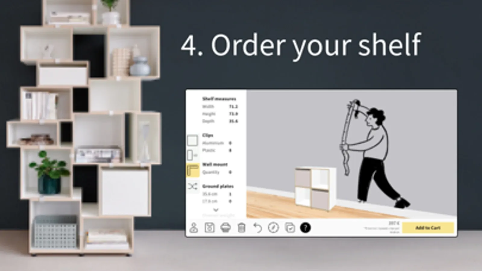 stocubo, on the other hand, lives from your ideas. Try it out! In our app you can easily build the perfect shelf yourself, whether for books, vinyl records, sloping ceilings or other projects. You can amend and rebuild the shelf yourself at any time at home.